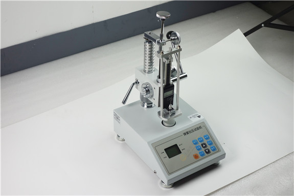 3.上述測(cè)量步驟調(diào)整好之后,開(kāi)始成批測(cè)量,把被測(cè)彈簧放在下壓盤或掛在上下掛鉤然后扳動(dòng)手柄7,即可進(jìn)行試樣測(cè)量,位移顯示器及試驗(yàn)力顯示器分別顯示出相應(yīng)的數(shù)